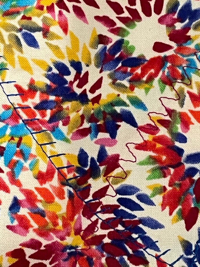 An attempt to relieve myself of the last remnants of ugly fabric, interfacing scraps, and brightly colored threads I will never use in a garment.