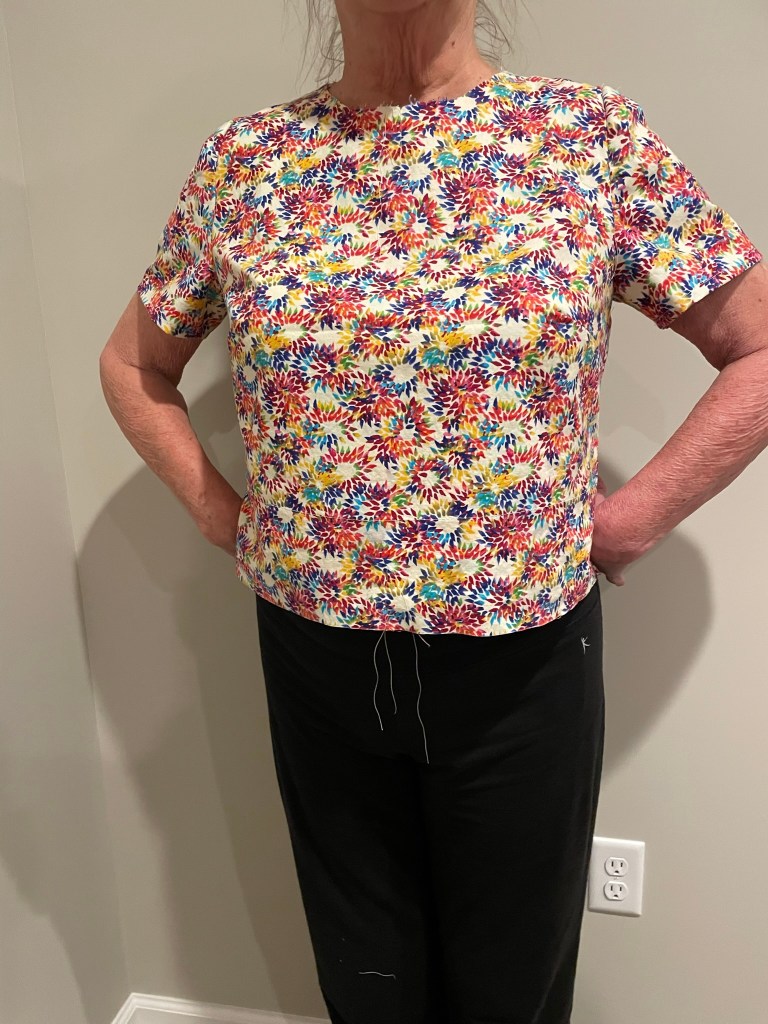I put the final version on and gave it the best “wear test” I could think of, which was cooking a meal, cleaning the kitchen, putting away pots and dishes, and just sitting and watching TV. Loving this top. Need MORE fabric!