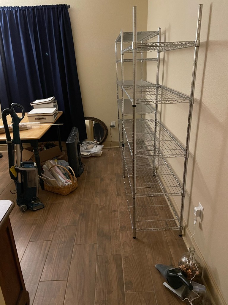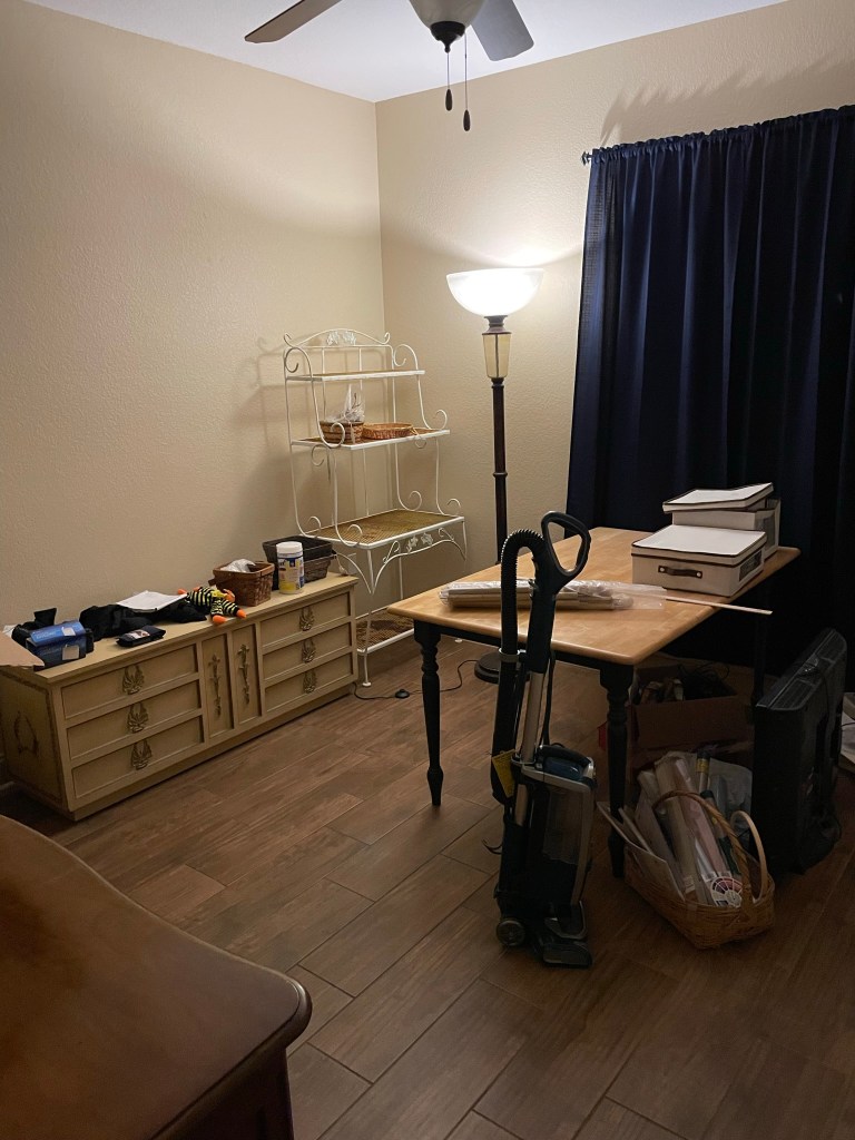 I am making progress, although slow. Hopefully in the end this will be my downstairs sewing room containing the quilt stash, the needlework stash, and office area with the computer.